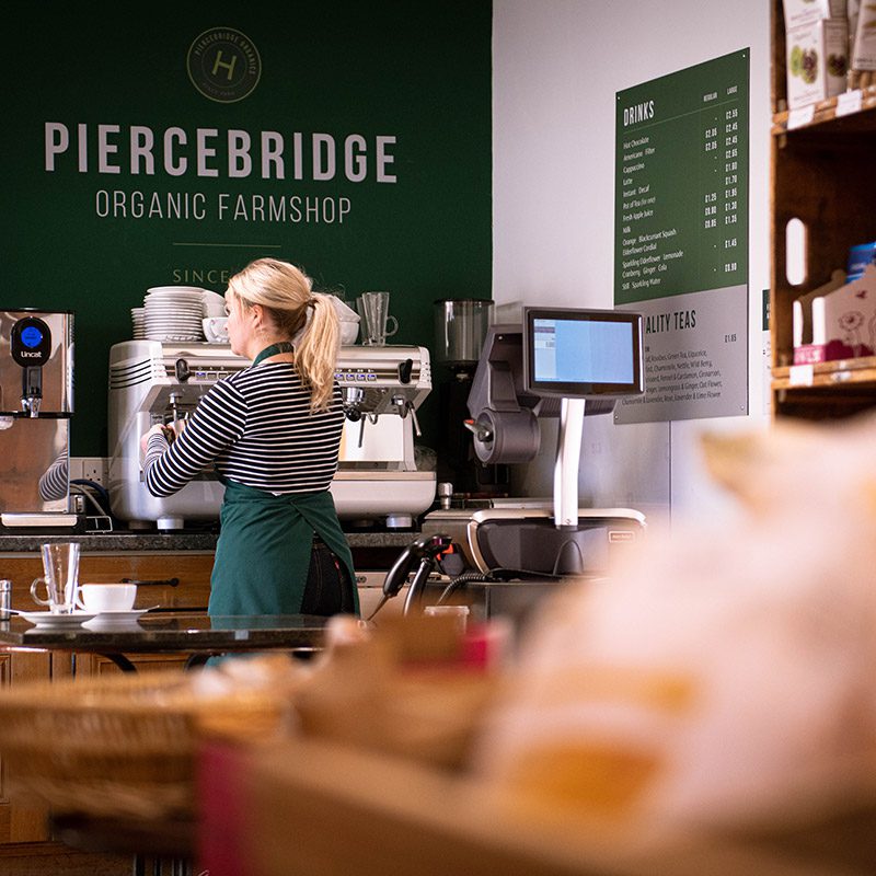 The Café offers a range of tasty light bites plus Organic and Fair-trade Coffees and Teas. We pride ourselves on knowing where all of our ingredients come from and where possible source everything locally from certified Organic suppliers. All our delicious baked goods are homemade in the farmhouse kitchen, we like to vary what is on offer but you can always find deliciously fresh cakes, scones, shortbreads, brownies and biscuits on display in the counter. A particular highlight on our menu is the Farmhouse Breakfast which includes home-produced eggs from Harry’s hens, Piercebridge porkers sausages, home-reared bacon, local bread, Organic baked beans and local mushrooms.